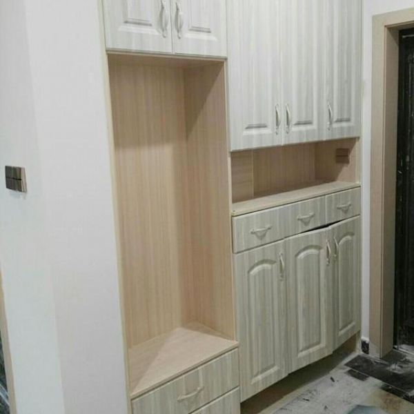 入户玄关处专门定做了一个大鞋柜,分为两下两层,还留空做了一个换鞋凳子,既节省空间又方便使用。位置比较小就没有另外做换鞋凳,直接改成跟柜子一体的。