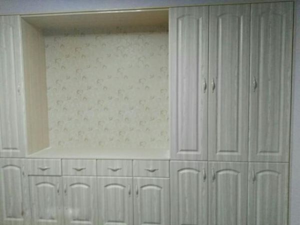主卧有一整面的衣柜,中间的衣柜是用来放电视的,或者放一些装饰品也行,满墙的柜子储物特别方便。