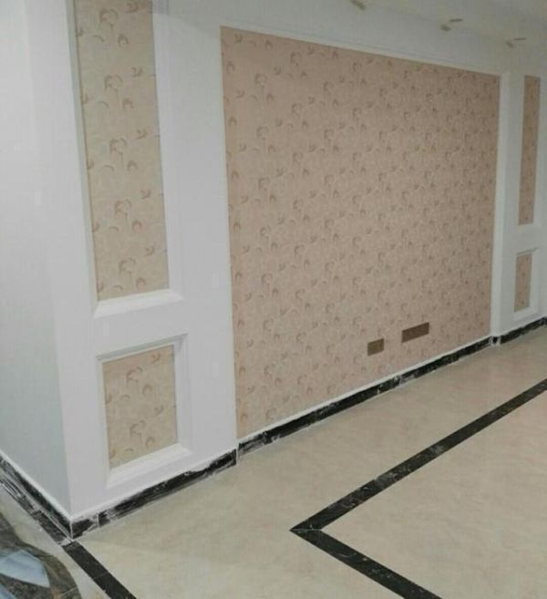 这是客厅,背景墙用石膏线处理了一下,不会那么单调,还刷了墙纸。