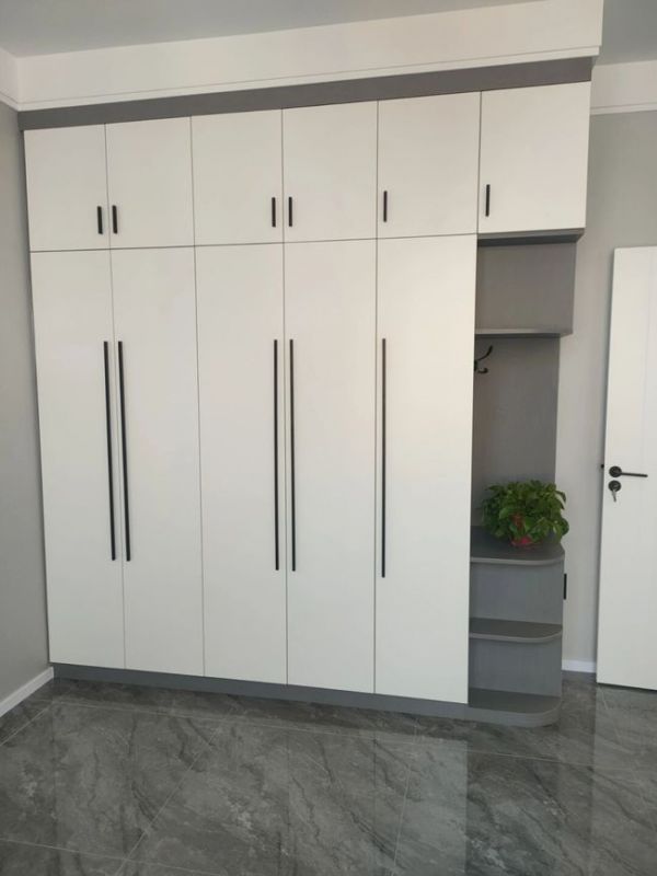衣柜也全都是两种颜色搭配,看着不会显得单调。而选择安装了长条的拉手,更是让人喜欢,使用的时候,更方便一些。室内门都是选择白色,与整个空间搭配协调,给人的感觉,非常舒适。