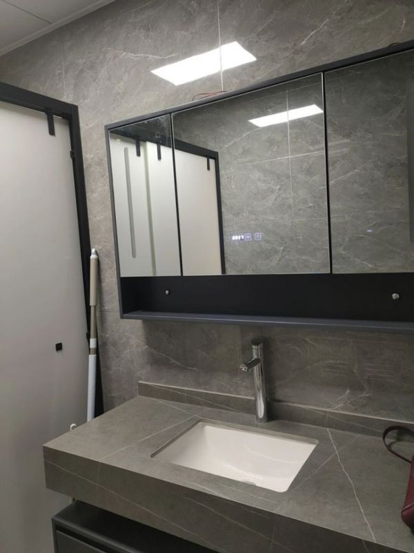 卫生间做了干湿分离,洗澡的时候不会把整个空间给弄湿了,做保洁也会方便很多。而安装了非常实用的柜式镜子,可以适当增加一些醋五空间。也是选择灰色调,简单又好看。