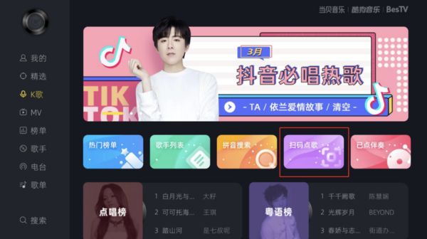 大屏的画质让你有家庭影院的既视感,当然在家的自助练歌房,当贝NEW F3也能为你量身打造,只要在当贝OS中下载当贝酷狗音乐,就能在家练就“麦霸技能”。