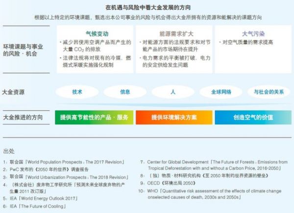 面对如此严峻的环境问题,大金以高度的责任担当和具有前瞻性的目光,较早地提出并制定出台了“环境愿景2050”长期规划,目标到2050年在全球的事业活动及产品服务中实现温室气体净“零”排放,依托大金现有的技术、信息、人等资源,从机遇与风险的视角规划出至2050年大金事业的发展方向,为气候变化应对提供健康空气解决方案。