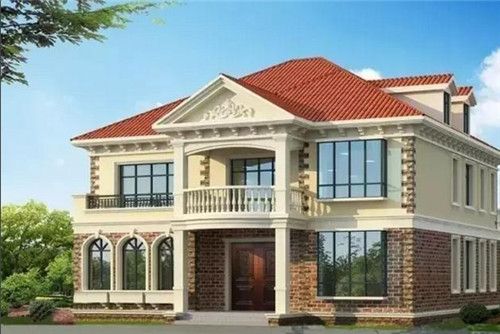 这款房屋采用的是欧式的建筑风格,底层采用了深色的文化砖,既复古又耐脏。再配上淡黄色的真石漆+红色的琉璃瓦,则可以让房屋色彩更加的丰富。多窗设计可以让空间更加通透。室内布局紧凑,分区合理,可满足业主业主不同的需求