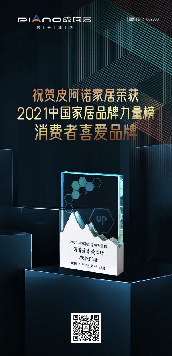 “时代追光者”中国家居品牌力量榜评选由优居、腾讯家居、贝壳三大行业权威媒体联合发起,是面向整个家居行业发起的全网票选,根据品牌贡献力、影响力、创新力、生命力、环保力、技术力,以及行业反响等多个维度进行综合评定。皮阿诺在家居行业业界人士、媒体朋友、广大消费者的见证下,荣获“2021中国家居品牌力量榜-消费者喜爱品牌”奖项,再次彰显品牌的强大实力。