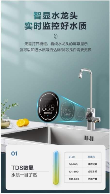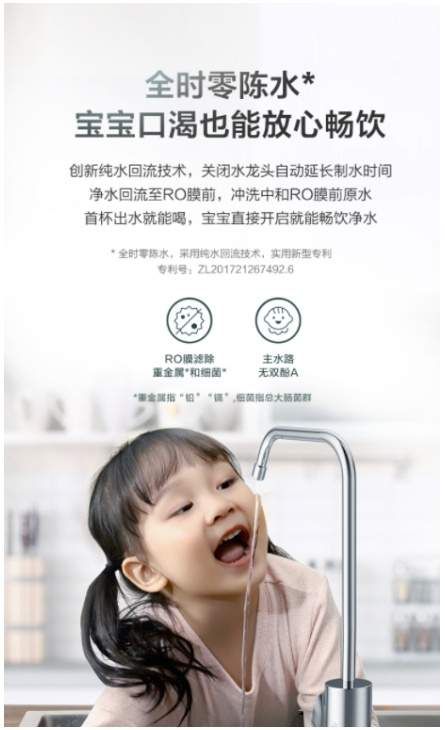 净水机停止工作后,废水中的杂质会通过滤芯渗透到纯水中,待机时间越久,再打开龙头后第一杯水的TDS值越高,而且会产生一种威胁人类健康的急性呼吸道传染病菌——军团菌。因此对于普通净水机来讲,第一杯水并不适宜直接饮用。那么,有没有净水机可以做到不浪费这第一杯水呢?