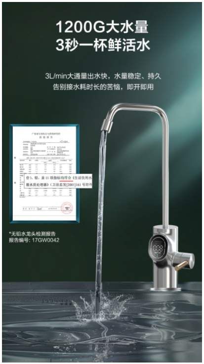 美的澎湃1200G净水机,以创新科技为用户打造畅快健康饮水质感生活,它配备1200G净水大通量,净水流速高达3L/min,3秒一杯水,冲奶泡茶煲汤,全家畅享不等待。日常煲汤、冲奶、烹饪无需等待,取水更快更省时,快速满足全家用水需求,让用户把更多时间留给生活,畅享欢悦时刻。
