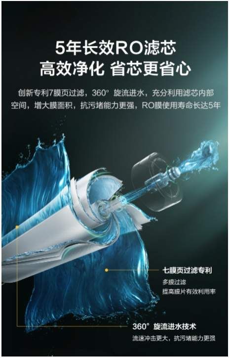 美的澎湃1200G净水机,采用360°旋流进水技术,抗污堵能力更强;RO膜使用寿命长达5年,免除滤芯频繁更换的烦恼;七膜页过滤专利,采用高精度的5级过滤系统,有效滤除自来水中的水垢及重金属等有害物质,细菌去除率高达99%;