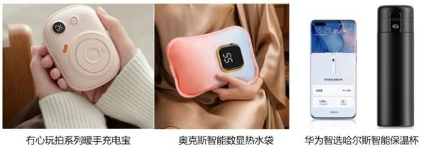 当然,保暖不止于在家中,出门也要做好防寒工作。为了让大家暖装出行,拥有可盐可甜精致相机外观的冇心玩拍系列暖手充电宝、握感舒适小米蕉造型的MUID香蕉暖手宝等随行好物不仅可以给双手和手机双向“送温暖”,还是冬日出街搭配的点睛之笔;奥克斯智能数显热水袋,8层锁温抗重压、四重AI温控让取暖更安全。而上高铁、飞机必备的仁和热敷蒸汽眼罩,让你暖享惬意时光的同时也能滋润眼周肌肤,缓解用眼疲劳。此外,还有精准显温的苏泊尔智能保温杯、实现饮水健康管理的华为智选哈尔斯智能保温杯等,随时随地为你送上“多喝热水”的暖心叮嘱。