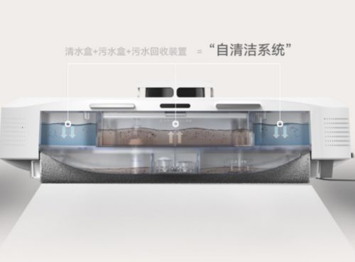而基站配备的清洁系统由清水、污水桶、拖布清洗装置、风干装置组成。当基站感应到机身清水差不多用尽,污水盒快满时,自动召回机身。首先回收机身上的脏污,然后向拖布喷洒清水并进行高速反转清洗,清洗完成后进行风干,清洁度和风干率高达99%,由此保证了拖布时刻保持干净。