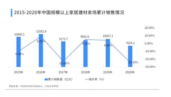 前言:资本加持家居流通业、卖场发力数字化、实体商场多元业态和场景改造……据商务部流通业发展司数据,在过去的2020年规模以上建材家居卖场累计销售额为7624.17亿元,同比下降24.19%。家居流通行业经营压力升高、转型加速。