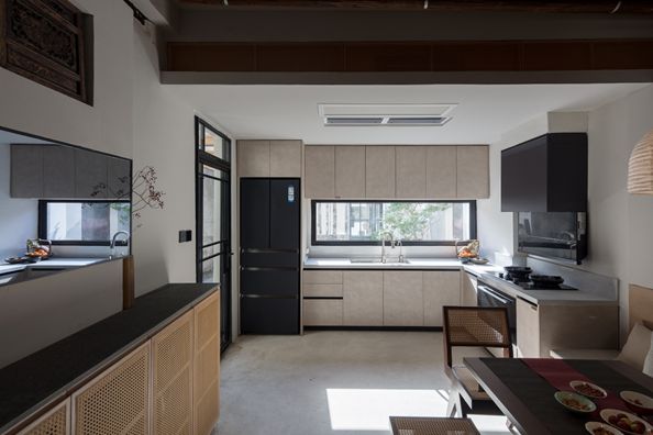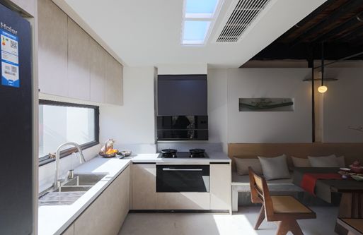 设计师顾亿有着非常细腻的心思,他觉得“炊烟升起的地方才称为家,所以不管改造难度再大,都要复原一个厨房的功能”。他察觉到一家人因为老旧厨房的不便而很难在一起用餐,这对明显话少的父子两代来说,缺少了一个自然的情感交流的机会,因此厨房的改造不仅承担着要提高生活品质的期待,而且还是让一家人能够坐在一起交流的重要场景。