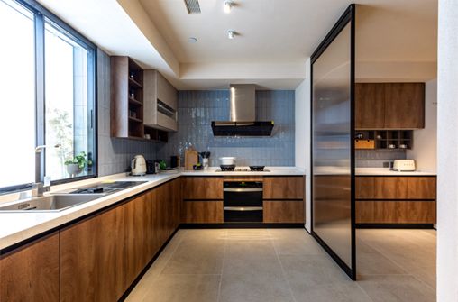 最终,顾亿结合一楼的空间特点敲定厨房采用开放式设计。为了匹配整个家居环境的设计气质,选用了柏厨家居经典爆款时光印橡作为整个厨房空间解决方案的主体产品。在空间上,开放式的设计保证了内部空间的开阔和视觉效果放松,设计师还贴心的在地柜上方开了一个景观窗,烹饪的同时抬眼就能望见美丽的景色;为了满足多口之家的使用需求,时光印橡的黄金收纳系统显得格外重要,在同样大小的空间有着更高的空间利用率,是非常具有实际意义的设计,而吊柜在LED灯带的烘托下显得分外沉静,正如同整个被改造完成的酒香之家一样,时光静好,幸福无声。