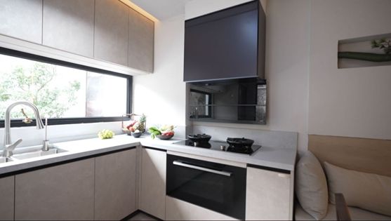 设计师在改造时的设计理念非常朴实也非常动人,家居空间一定是服务于人的日常生活和行动轨迹,而不同的家庭都有着差异化的实际需求,因此个性化的解决方案才能够更好的去匹配这些需求,服务于不同的家居生活。回归改造,设计师选用时光印橡的另一个主要原因就是这款产品展示出的极具特色的外观设计和文化内涵。时光印橡厨房以记录时光岁月为设计理念,通过厨房记载家的美好时光。改造后的厨房,肉眼可感的真实触感珠光岩,凹凸肌理的荔枝纹台面,和谐的色调,漂亮的纹理,都成为时光印记的化身,简约不失精致,大气而富有内涵,用烟火生活追一点时光里的轻松与从容,正印证了这个五代相传的酿酒世家的家庭沿革。