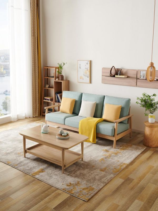 沙发的面料材质多种多样,真皮、布艺、科技布、实木等不一而足。皮质沙发给人的感觉相对沉稳、气派,并且价格也相对高一些,更适合户型较大的家庭。所以YOYO更推荐小户型家庭选择的是布艺沙发和科技布沙发。