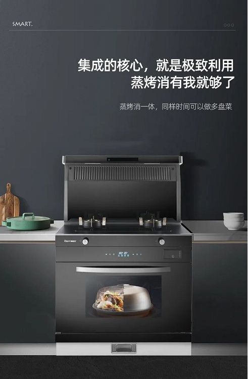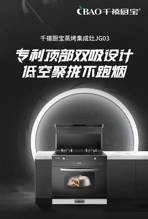千禧厨宝JG03蒸烤款集成灶,整合烟灶蒸烤功能,更专业的蒸烤功能,烟灶蒸烤一体成就了健康无烟厨房,满足了任意随性的生活,符合消费者追求健康的饮食习惯。