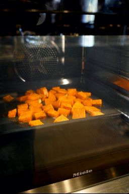 活动现场,知名美食博主Vincent使用美诺7000系列厨电为大家制作了感恩节早午餐,作为家电领域的推动者,德国美诺Miele率先将智能电器与先进技术结合,只要连接APP,FoodView功能可以通过烤箱中的烹饪电子眼事实查看在烤箱中的南瓜的状态,精准把控食物品质。7000系列蒸炉通过内置的温度感应器,多维蒸技术智能调控蒸汽量,让100%纯蒸汽充分均匀分布在每个角落,大幅度地保留食材新鲜度,带来更健康的饮食方式。