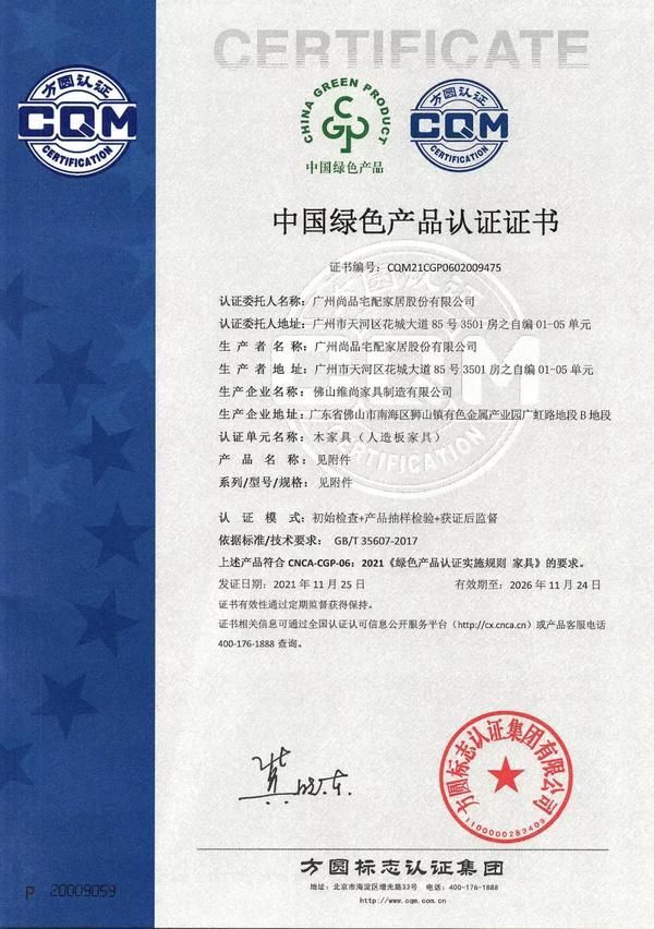 快讯|尚品宅配荣获“中国绿色产品”认证