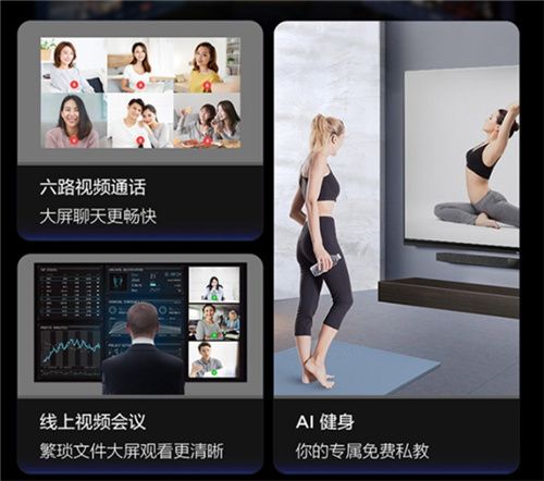 在智能方面,华为智慧屏 V98搭载了一颗2400万超广角AI摄像头,支持多方畅连通话、智能人像追踪、AI Kids等功能。向下22°俯视角度,有效覆盖客厅各个角落,配合98英寸巨幕,无论视频通话,还是AI健身,屏幕画面都接近真人比例,更具代入感。