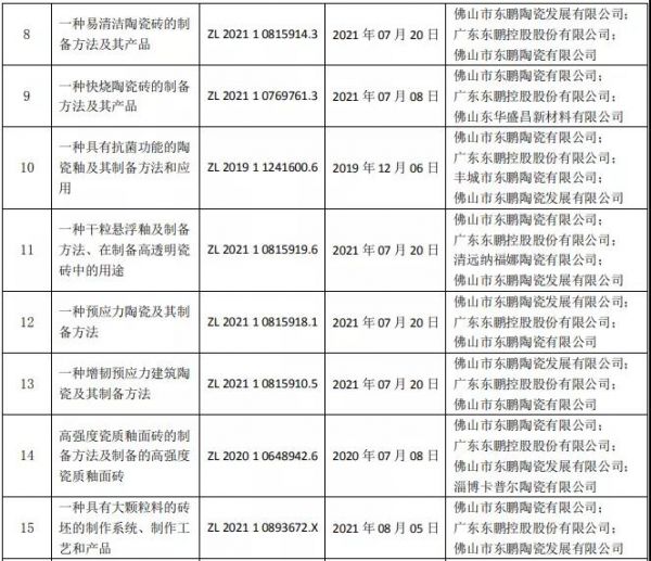 陶卫快讯 | 东鹏控股:公司及子公司取得17项发明专利证书