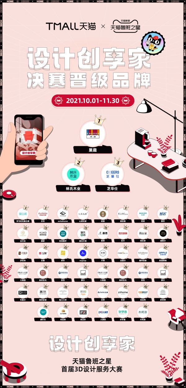 此次大赛,于2021年10月1日-11月30日期间开展了初赛,经过营销力和审美力等多维度的综合打分后,49个品牌成功晋级决赛。