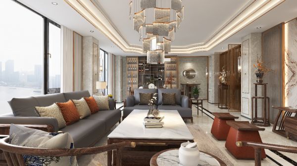 心居名家的参赛作品:新中式实木家具,打造儒雅内敛的客厅空间