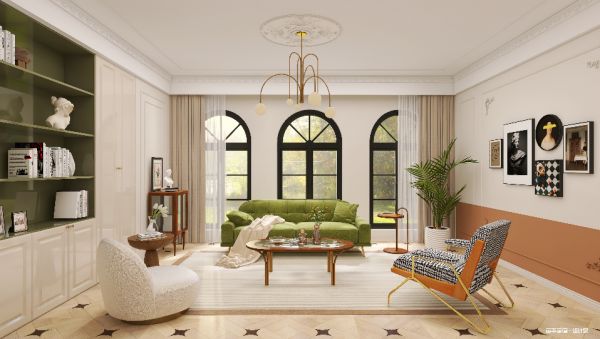 evitahome的参赛作品:法式奶油风,配以牛油果绿和脏脏橘,呈现出年轻审美的不凡品位