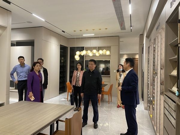 随后,在尹董事长的带领下,陆书记一行走进客来福全新高定展厅。在展厅内,陆书记一行近距离接触到客来福在产品革新上的动作。全新产品体系、人性化的产品设计、契合市场流行的颜色搭配,客来福紧抓消费者需求,将用户需求融入产品设计中,打造与时俱进的独特产品。