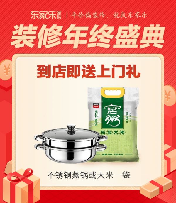 装修年终盛典活动期间,到店即送上门礼不锈钢蒸锅或大米一袋!