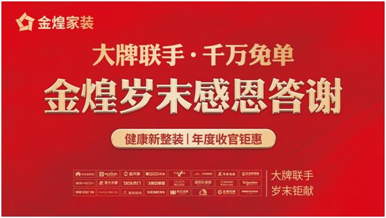 金煌集团,历经二十年的品牌锤炼,发展成为多元化集团规模的湖南龙头家装企业。而今年,是金煌迈向二十年发展里程碑的一年。为岁末感恩答谢新老客户,“金煌家装总裁”携手一线“健康品牌联盟”战略合作伙伴总裁共同推出千万免单福利,此次活动金煌家装用年末盛惠与感恩大礼,致谢每一位业主的信赖与支持,携手新老客户欢聚一堂,年度收官钜惠。