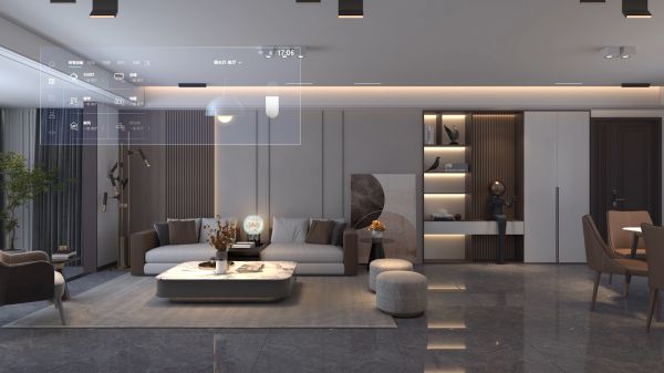 在出门那一刻,家中窗帘徐徐合上,灯光自动关闭;全屋安防报警系统自动开启,联动智能环境控制系统,时刻守护家庭安全。