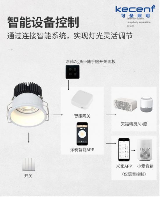 为了让大家更好地了解智能防眩射灯,我们现以KECENT可圣照明的一款产品为例,着重分析下它在“智能”与“防眩”这两方面的表现。