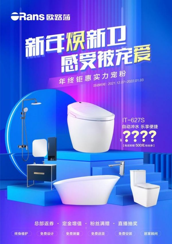 期间,凡是在举行活动的欧路莎门店内订购爆款智能马桶IT-627S,总部补贴500元粉丝抵扣券,实力宠粉丝,助力新年换新卫。