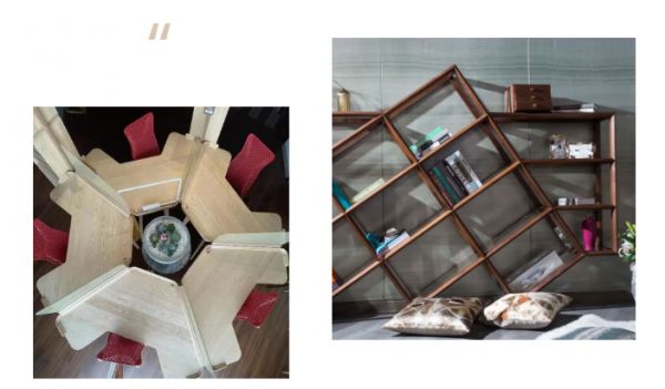 “再比如,顶角36度的三角形是最经典的黄金三角形,五角星直接就是黄金分割点,四边形5:8的比例是黄金分割点,这个比例的图形所呈现的曲线一下子就好看很多。基于人类对审美的共识,这也是EPOCHOME野木家居的产品设计标准:将所有不可拆装的部件,全部以榫卯结构连接,以保证家具的中国底色,而在风格上,放弃明清元素,大胆吸收国际美学元素,以符合我国国人人体工学的尺寸与角度来提升舒适性,工艺上采用高端现代化设备结合精工工匠技艺完成,材质上,运用好不同材质的特质,让每一件作品都是艺术品,让一流家具出自中国,以提升国人的生活品质,彰显当代中国人内心气节。