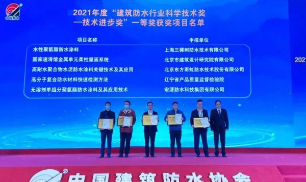 三棵树防水荣获“建筑防水行业科学技术奖——技术进步奖一等奖”等三项殊荣