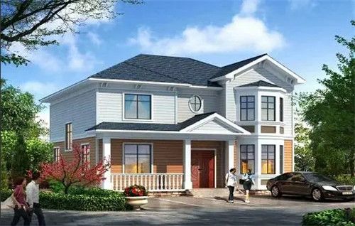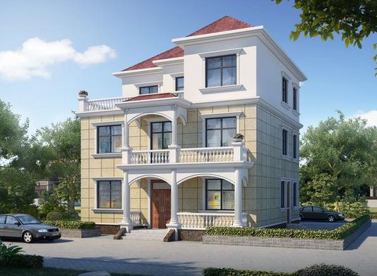 图片描述:这款简单大气的欧式建筑是当今农村的新宠,外观配色非常的温馨时尚,线条感流畅,符合大部分人的审美。而外立面不同规格的窗户设计,可以增加房屋的层次感,让房屋看起来更有设计气息。
