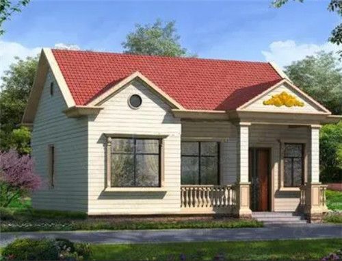 这款房屋非常适合老人居住,白色的外墙+红色的斜顶屋顶,则可以让房屋给人眼前一亮的感觉。厨房、客厅、卧室、厕所在一个空间内的设计,方便老人活动。多窗设计,可以增加室内的采光和通风,让业主住起来更加的舒适。
