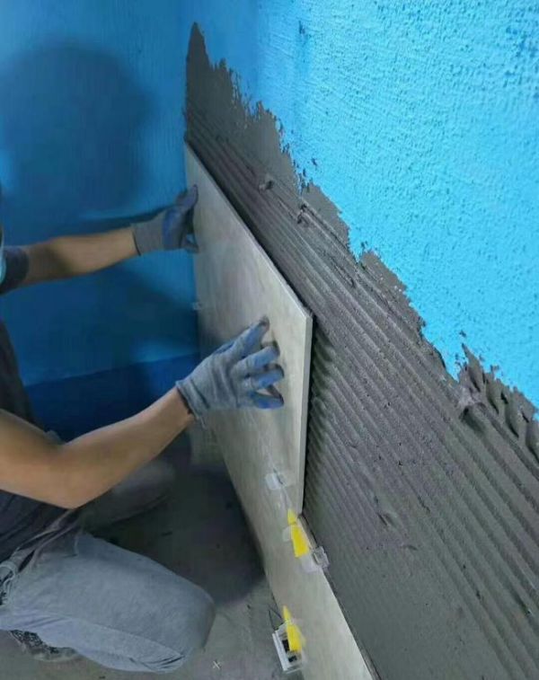所以,在遇到大尺寸瓷砖,或者低吸水率瓷砖上墙的时候,需要使用瓷砖背胶。