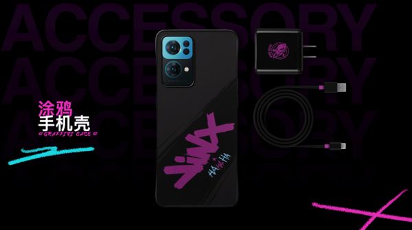 不仅仅是手机,对于Reno7 Pro英雄联盟手游限定版的配件,OPPO也花了很多心思。首先就是带有金克丝涂鸦的定制手机壳,动漫元素十足,同时“JINX”的大名映入眼帘让人一眼就能看出是金克丝的定制元素,充电器也同样加入了“超究极死神飞弹”的标志,极具辨识度。