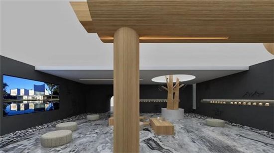 欧神诺“字觉·雅空间”概念馆,外观整体造型极具现代中式几何艺术之美,皎洁的白色,搭配欧神诺汝色蕴(烟粉蓝)国潮雅色,蓝白辉映,雅致、现代、时尚,充满高级感,彰显了欧神诺崇精尚雅的品牌精神。外墙的屋檐和榫卯拼图造型、室内的榫卯装置造型,在中国传统文化与现代中式空间艺术之间建立了链接。