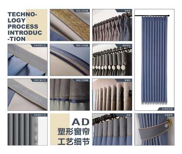 AD塑形窗帘与其他定型窗帘是有着明显的区别。定型只是窗帘加工过程中的一道工序,很多定型窗帘仅仅是在市场上买一片回来加工成定型窗帘而矣。而AD塑形窗帘从面料研发、款式搭配和设计、工艺标准制定、窗帘成品定制、加工、输出的整个过程,是一个系统工程,定型只是这个过程中的一个环节、一道工序。AD塑形窗帘带给消费者的是一种高品质的生活方式,让家更有型,是AD塑形窗帘的基本目标。