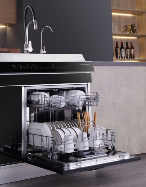 相较之前只能容纳6套餐具的集成水槽洗碗机,此次美仕杰物联网多功能集成水槽有了新突破,洗碗机容量升级为可容纳12套餐具,设计多重洗涤模式,满足不同场景洗涤需求,360°两层喷臂喷淋系统,上下交替喷淋瀑洗,搭配75℃高温水,快速溶解油污,实现对餐具表面无死角的清洁,无惧重油污;搭配强劲对流热风烘干,洗消烘存一体,抑制细菌二次滋生,利用热风烘干与余温,可长期干燥储存。