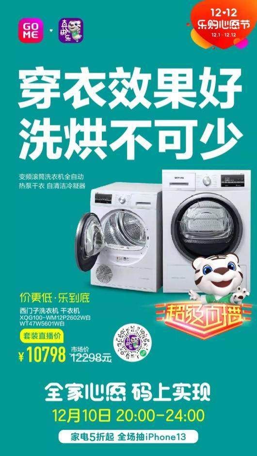 想要穿衣效果好,洗烘不可少,西门子洗衣机+干衣机套装,原价12298元,现套装直播价只要10798元;实惠好礼蒙牛特仑苏纯牛奶250ml*16盒*1箱 ,原价89.9元,直播到手价仅49.9元;鲁花5S压榨一级花生油5L,原价181.9元,直播到手价只要119.9元,划算;橙伙伴正宗奉节脐橙现摘新鲜橙子带箱5斤装,原价30.9元,直播到手价仅19.9元,超值;红牛安奈吉饮料250ml*24罐,原价129.9,直播到手价96.9元;洋河52度梦之蓝M3水晶版绵柔型白酒550ml,原价639元,直播到手价495元。更多爆品限时低价,“真快乐”双12超级直播夜给你好价。