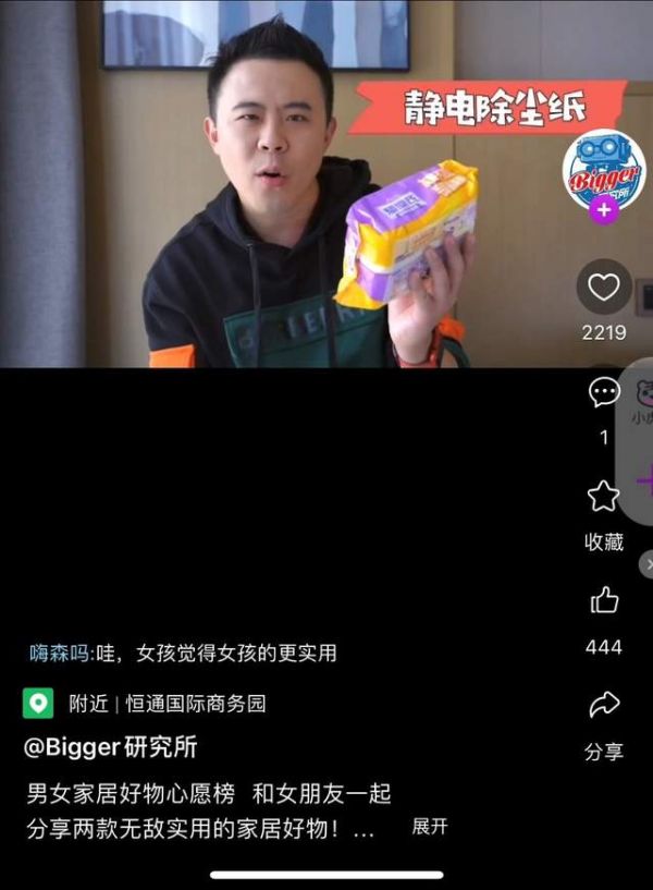近日,网红博主Bigger研究所所长参与“真快乐”APP的 #男女居家好物榜#挑战赛,和女朋友现场pk心目中的家居好物,受到全网关注,不少网友表示:原来男生和女生的思维,还真是天差之别啊!