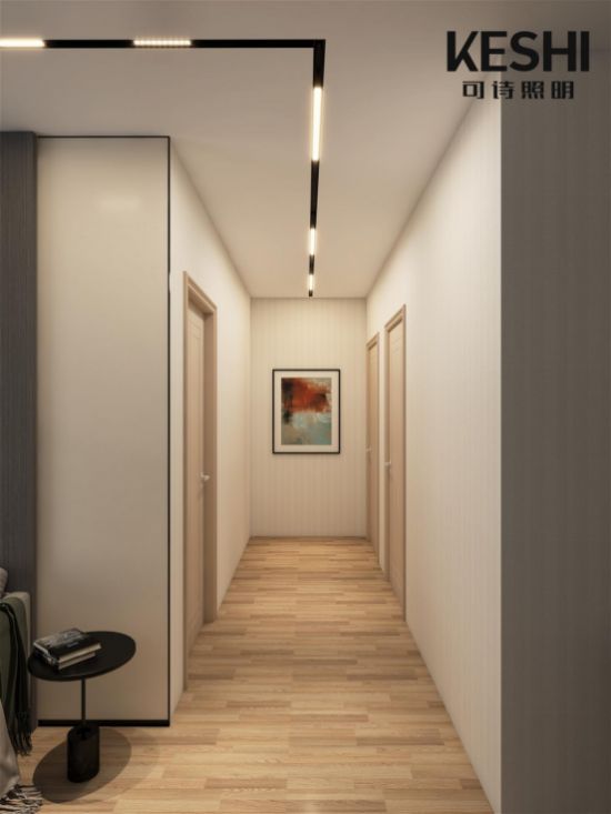KESHI可诗照明:很多人问,过道常常会让人觉得单调又局促,该如何才能将它打造得与众不同呢?如若大家从摆设上入手,难免会产生适得其反的效果,因为增加大型摆设会让过道变得更加狭窄;不妨考虑从灯光设计入手,选择安装与传统灯具有极大差异化的线性灯、磁吸轨道灯等,都能产生让我们意想不到的艺术性效果。