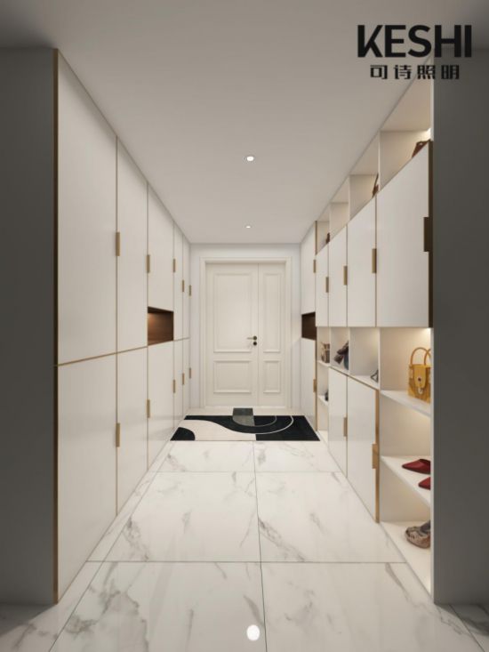 KESHI可诗照明:玄关作为外部与家的自然过渡空间,它承担着出门整理仪表、归来放置物品等重要功能,但如果灯光设计不当,主人很有可能每天都会重复着摸黑找鞋、杂物绊脚等一连串尴尬情况。