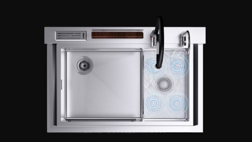 相比上一代的集成水槽,创新地增设砧板刀架烘消模块、超声波果蔬净洗模块,利用1立方米的集成空间,将洗、消、烘、存、净多种功能集于一体,拒绝空间浪费,提高实用性能,为用户解决厨房内的各种难题。
