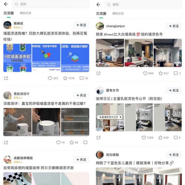 “如何选材”这个模块还开辟了交流圈供业主交流选材心得与经验,邀请了众多家居达人进行专业测评分享,给予用户选材提供更专业的建议。