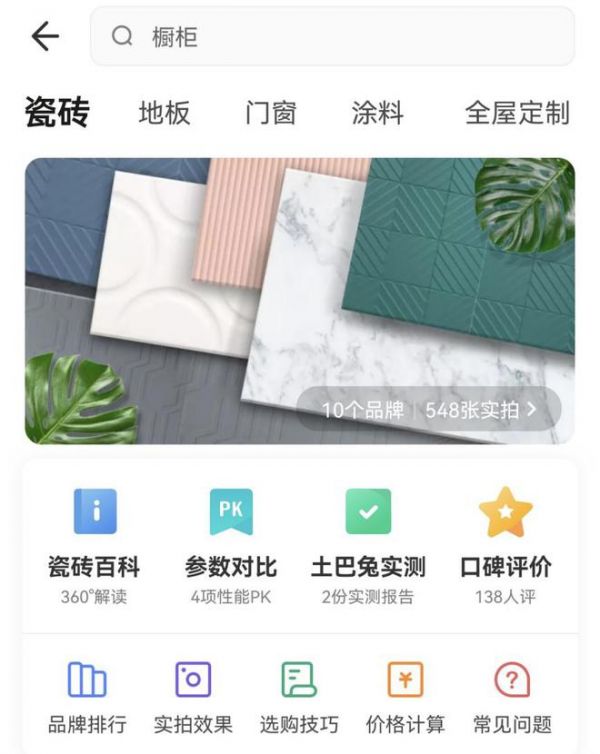 据了解,“如何选材”模块内容按材料属性进行分类,划分成瓷砖、地板、门窗、涂料与全屋定制五大类别。每个细分品类中,涵盖百科解读、参数对比、实测报告及口碑评价等干货内容,通过各参数横向对比,让用户更加了解不同品牌不同品类的产品特点,帮助用户找到适合自己的材料。