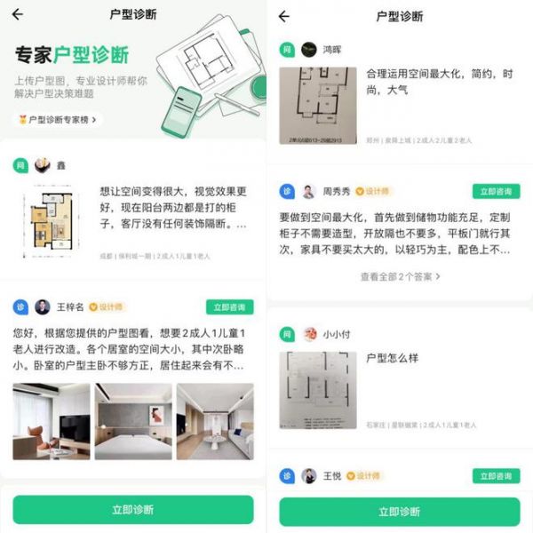 除此之外,“户型诊断”也是土巴兔于下半年推出的全新功能模块。用户只要上传自家户型图,描述自己的户型问题与改造需求,就会有专业设计师或装修公司现身解答问题,给予专业的户型改造建议。